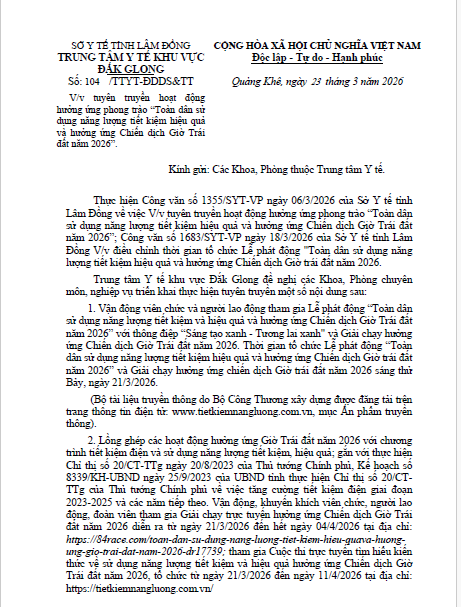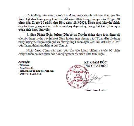 V/v tuyên truyền hoạt động hưởng ứng phong trào “Toàn dân sử dụng năng lượng tiết kiệm hiệu quả và hưởng ứng Chiến dịch Giờ Trái đất năm 2026”.