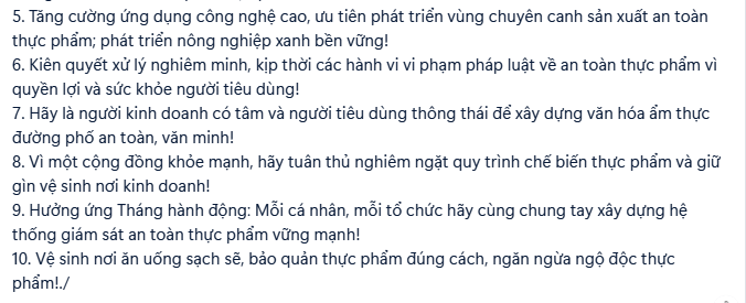 THÁNG HÀNH ĐỘNG VÌ AN TOÀN THỰC PHẨM