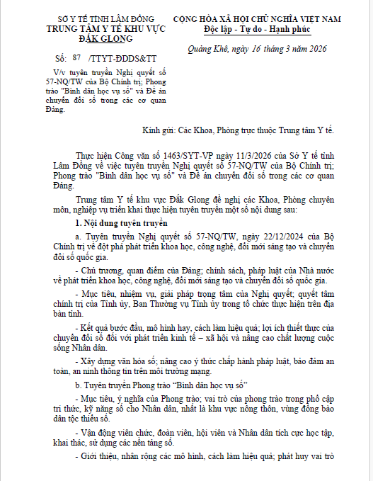 V/v tuyên truyền Nghị quyết số 57-NQ/TW của Bộ Chính trị; Phong trào "Bình dân học vụ số" và Đề án chuyển đổi số trong các cơ quan Đảng.