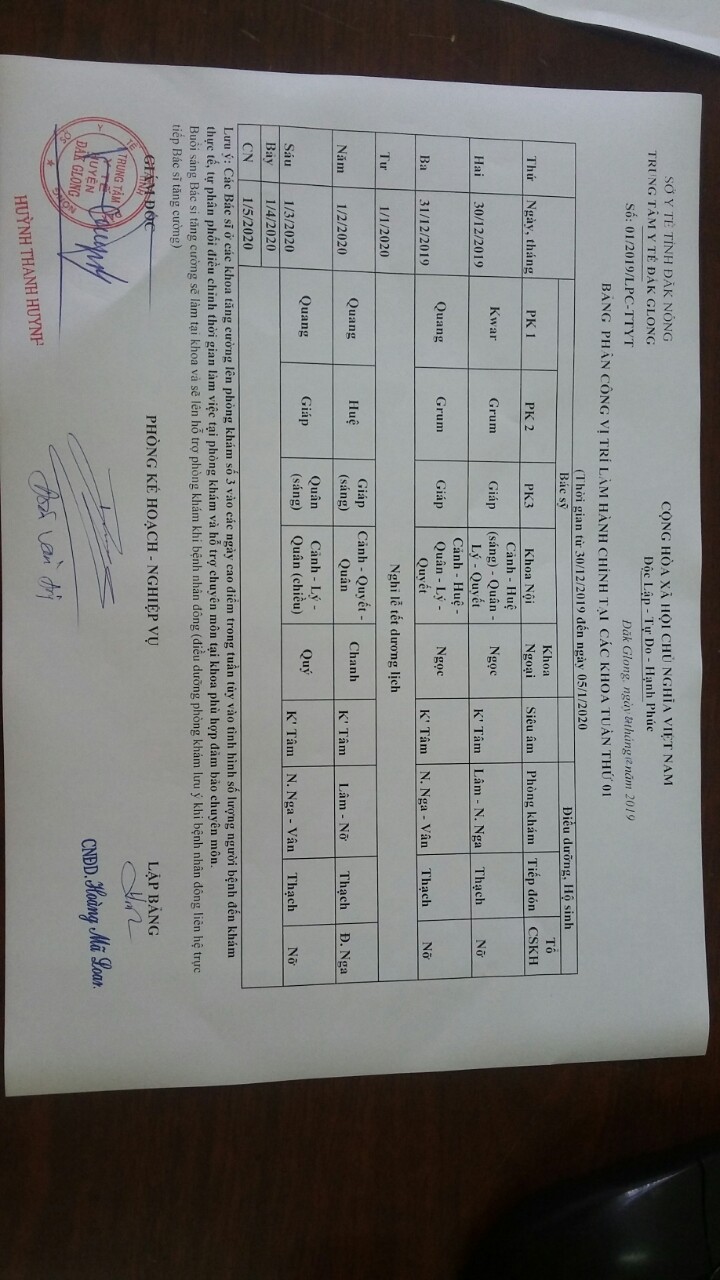 thông báo về DMKT thực hiện tại TTYT Đắk Glong