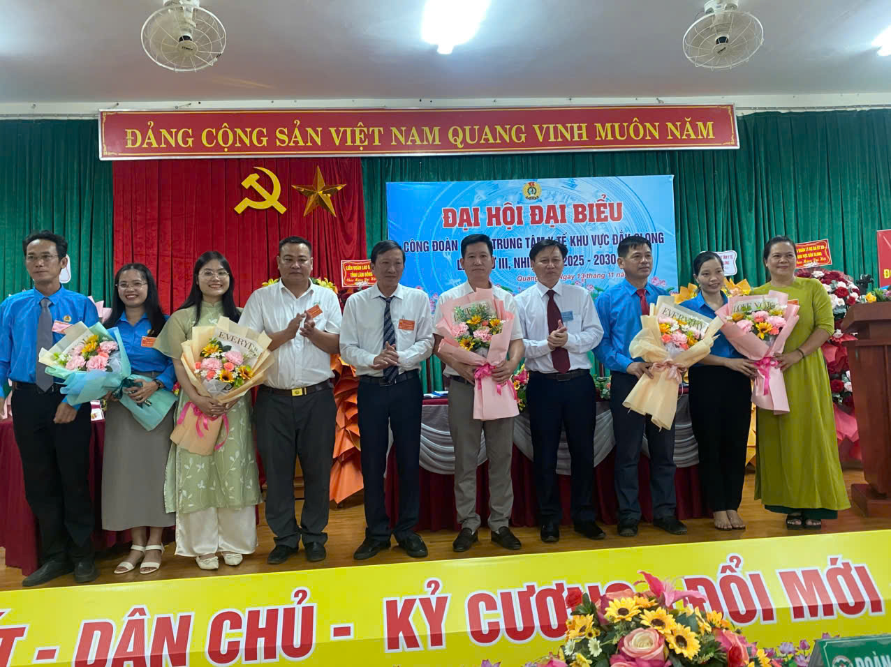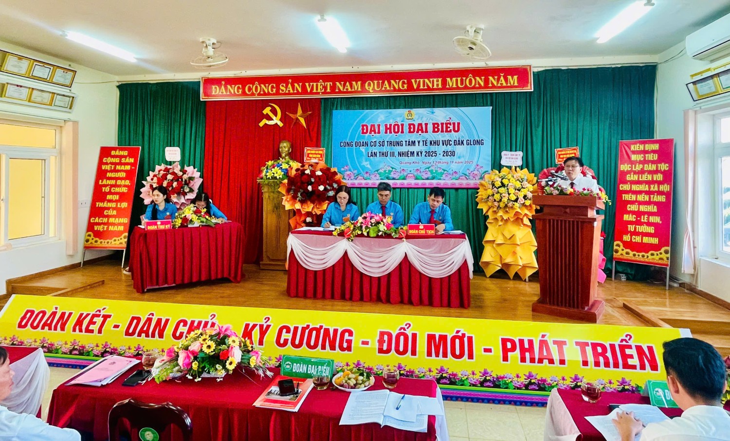 Với phương châm “Đoàn kết - Dân chủ - Kỷ cương – Đổi mới - Phát triển”, sau một ngày làm việc khẩn trương và nghiêm túc Đại hội đã thành công tốt đẹp. Tại Đại hội đã bầu ra Ban Chấp hành Công đoàn cơ sở Trung tâm Y tế khu vực nhiệm kỳ 2025-2030 gồm 05 đồng chí; Đồng chí Sầm Phúc Hoan, Phó Giám Đốc Trung tâm Y tế được Đại hội tín nhiệm bầu làm Chủ tịch Công đoàn cơ sở Trung tâm Y tế khu vực Đắk Glong nhiệm kỳ 2025-2030. Đồng chí: Lèng Ngọc Triệu bầu làm Phó chủ tịch CĐCS TTYT khu vực Đắk Glong