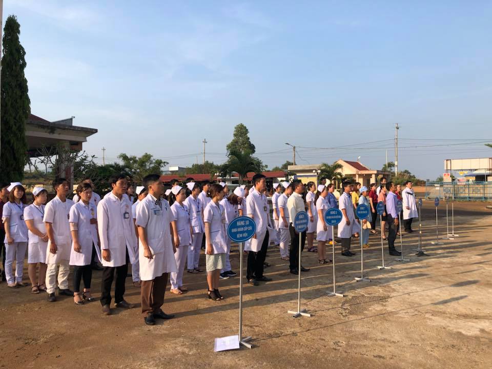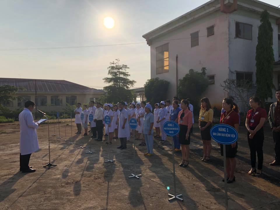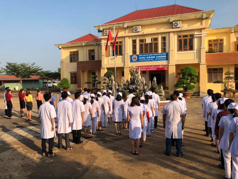 Sáng ngày 02/04/2018, Bệnh viện Đa khoa huyện Đăk Glong trang trọng tổ chức chào cờ tháng 4. Tham dự Lễ chào cờ có Ban lãnh đạo; Trưởng phó các khoa, phòng, và toàn thể cán bộ, Đảng viên, viên chức, người lao động trong toàn viện. Đúng theo giờ quy định, các cán bộ, Đảng viên,viên chức, người lao động đã có mặt đầy đủ; trang nghiêm đứng dưới Cờ tổ quốc và hát vang bài Quốc ca.