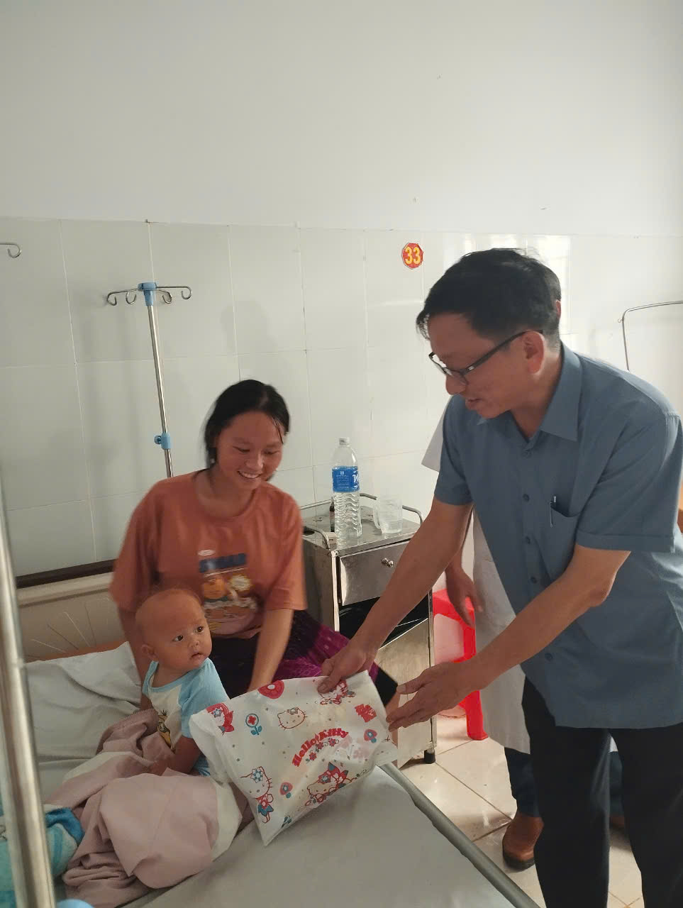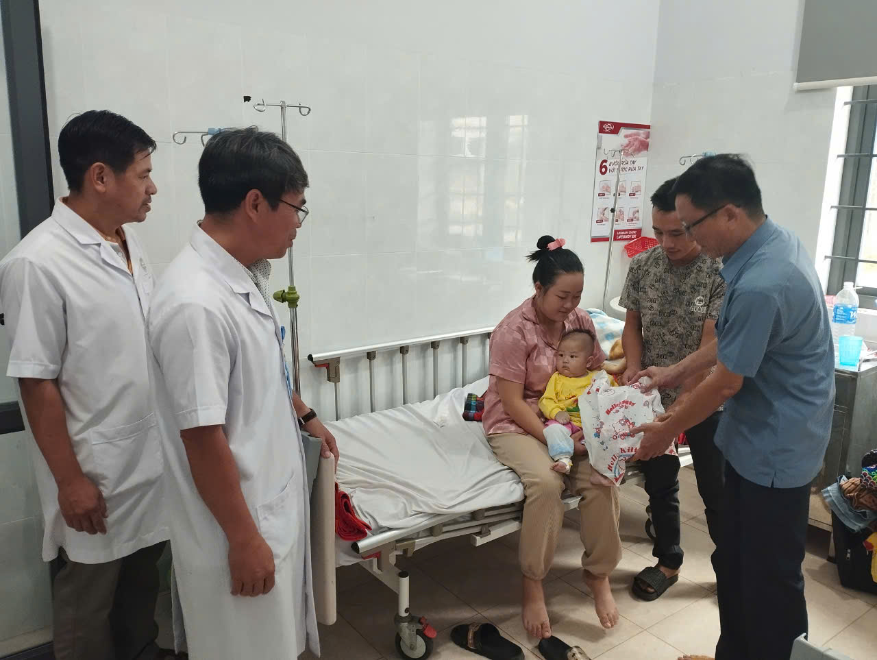 Được sự thống nhất Đảng ủy, BGĐ Trung tâm; sáng ngày 17 tháng 9 năm 2024, Ths.BS Vũ Xuân Tân - Bí thư Đảng Ủy TTYT - Giám đốc TTYT, BSCKI K' War Nao M' Ham Chủ tịch CĐCS TTYT, CN. Lèng Ngọc Triệu Phó chủ tịch CĐCS ; đã đến thăm, động viên và tặng quà cho các cháu thiếu nhi đang nằm điều trị tại Trung tâm Y tế huyện Đắk Glong./.