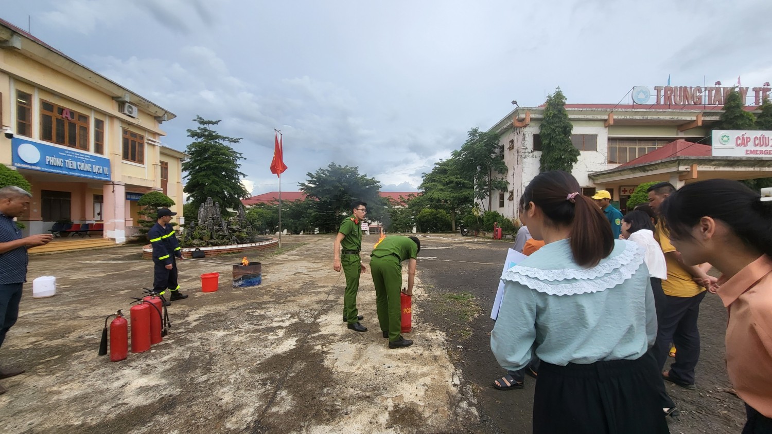 Thực hiện kế hoạch số 156/KH-TTYT ngày 05/07/2023 của Trung tâm Y tế huyện Đắk Glong về việc Tổ chức tuyên truyền, tập huấn nghiệp vụ phòng cháy chữa cháy năm 2023 cho cán bộ viên chức của Trung tâm và 07 Trạm Y tế xã trực thuộc.
