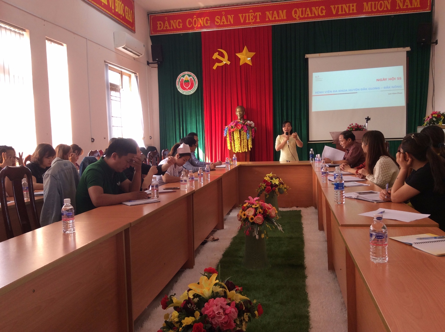Với mục đích hướng đến môi trường làm việc khoa học, an toàn cho cán bộ y tế cũng như bệnh nhân đồng thời nâng cao hiệu quả công việc, giảm thiểu tối đa các rủi ro, không ngừng đáp ứng sự hài lòng của người bệnh. Ngày 03/3/2018, tại Hội trường Bệnh viện đa khoa huyện Đăk Glong đã tổ chức triển khai “Ngày hội 5s” cho cán bộ nhân viên y tế trong toàn viện. Mở đầu ngày hội 5s là lời phát biểu của BS.Nguyễn Thọ Cảnh – Phó Giám đốc bệnh viện: “5S” là nhiệm vụ trọng tâm thực hiện triển khai theo từng bước rõ ràng với mục tiêu đã được phê duyệt. Ban Giám đốc mong muốn sau ngày hội 5S ngày hôm nay tất cả các khoa/ phòng của bệnh viện cùng nhau chia sẽ kinh nghiệm, sáng kiến và sáng tạo sắp xếp, gọn gàng, sạch sẽ, khoa học, từ tài liệu, thuốc men, trang thiết bị y tế… trong việc quản lý, lưu trữ để đáp ứng nhu cầu tìm kiếm, phục vụ tốt nhất cho người bệnh, giúp không gian làm việc sạch đẹp – an toàn – văn minh…