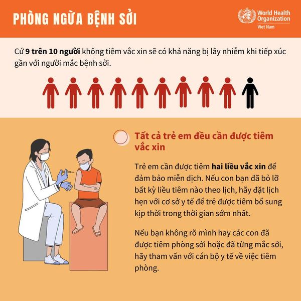 -Tiếp tục thực hiện tiêm vét vắc xin Sởi cho trẻ em từ 6 đến 9 tháng tuổi và đối tượng từ 1 tuổi đến 10 tuổi chưa được tiêm đủ 2 mũi vắc xin Sởi theo quy định.