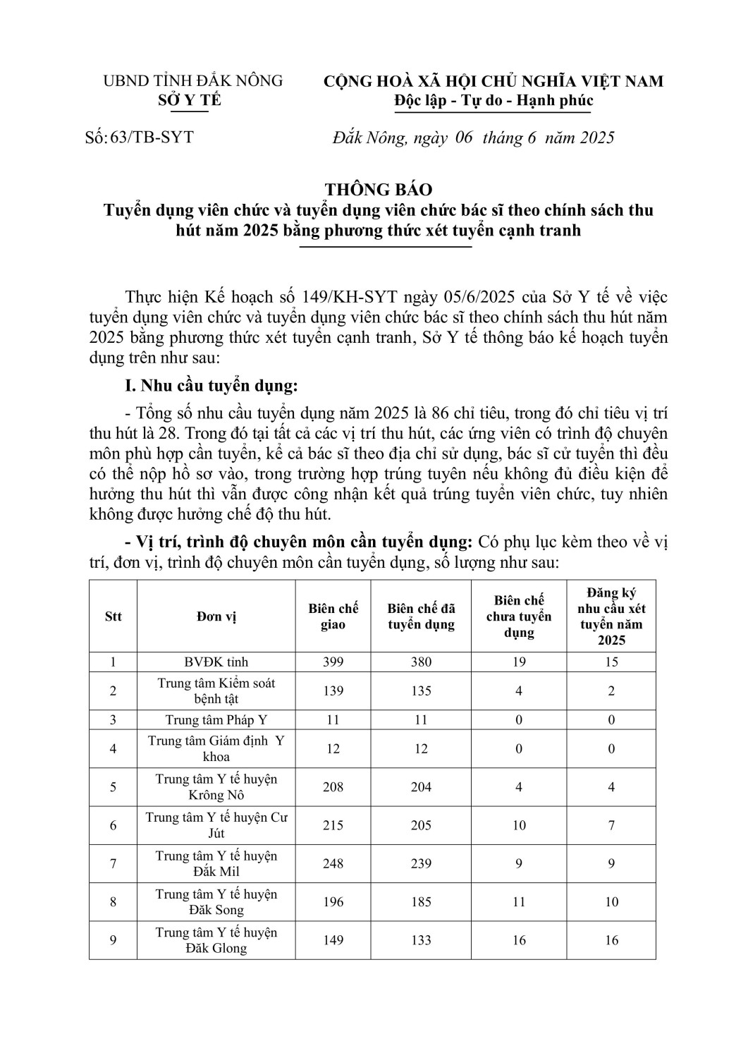 THÔNG BÁO TUYỂN DỤNG VIÊN CHỨC NĂM 2025
