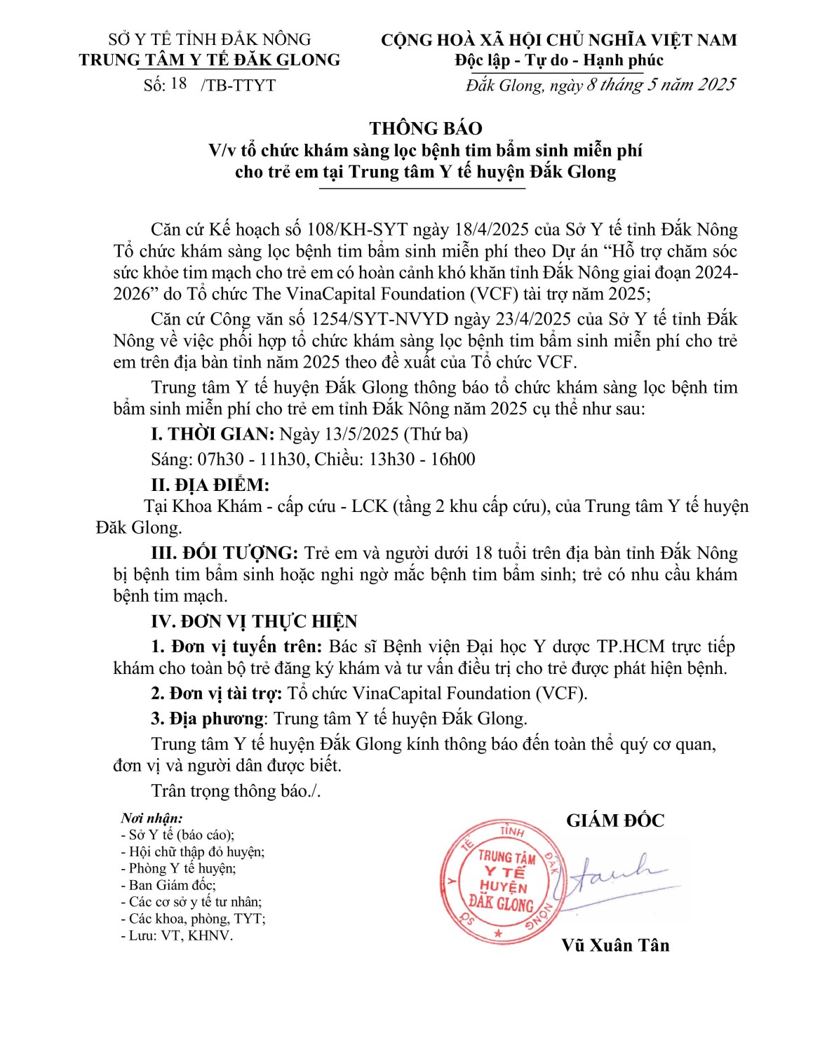 Khoa Ngoại sản – LCK bệnh viện đa khoa huyện ĐăkG’Long được thành lập theo Quyết định số 417/QĐ-SYT, ngày 09 tháng 12 năm 2009 của Sở Y tế tỉnh Đắk Nông về việc công nhận thành lập Khoa Ngoại sản – LCK Bệnh viện đa khoa huyện Đắk Glong và được kiện toàn lại bằng Quyết định số 911/QĐ-SYT ngày...